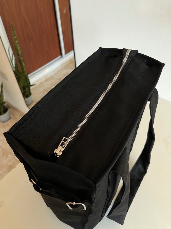 Su exterior está confeccionado en gabardina, una tela resistente. Tiene un bolsillo pequeño externo para el celular 📲 dentro de un bolsillo externo grande con cierre imantado 🫶🏼 Por último, un regulador en uno de los costados para colgar el abrigo, la gorra o lo que precises 🧣