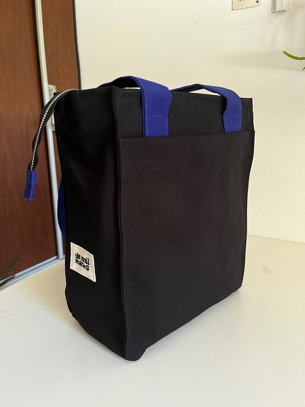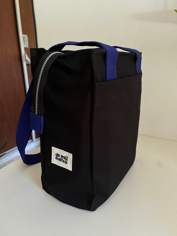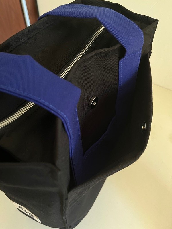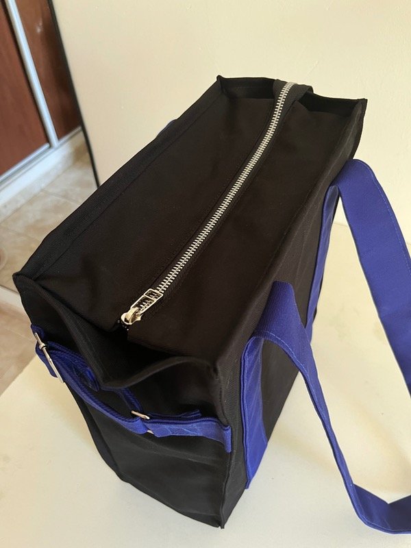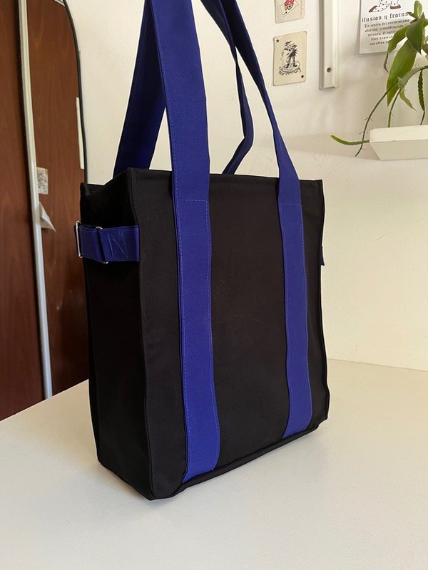 Su exterior está confeccionado en gabardina, una tela resistente. Tiene un bolsillo pequeño para el celular 📲 dentro de un bolsillo más grande con cierre imantado 🫶🏼 Por último, un regulador al costado para colgar el abrigo, la gorra o lo que precises 🧣