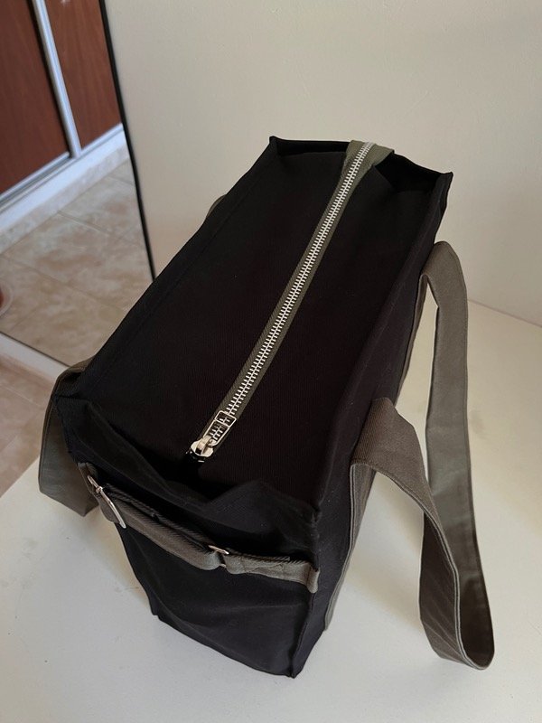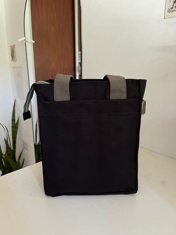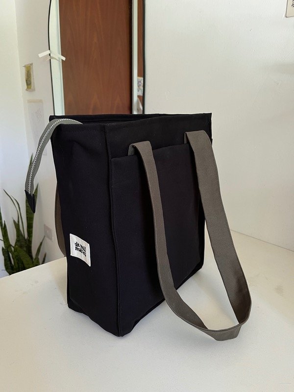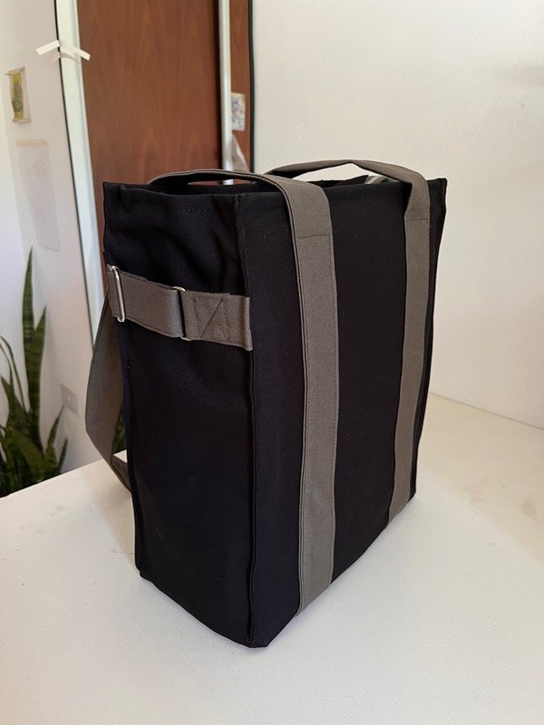 Su exterior está confeccionado en gabardina, una tela resistente. Tiene un bolsillo pequeño para el celular 📲 dentro de un bolsillo más grande con cierre imantado 🫶🏼 Por último, un regulador al costado para colgar el abrigo, la gorra o lo que precises 🧣