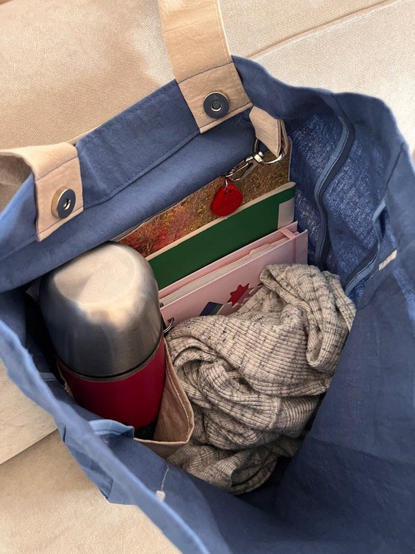 Tiene un espacio para colocar el termo o botella 💧 un bolsillo externo 📲 y gancho para tener siempre tus llaves a mano 🔑🫰🏼
